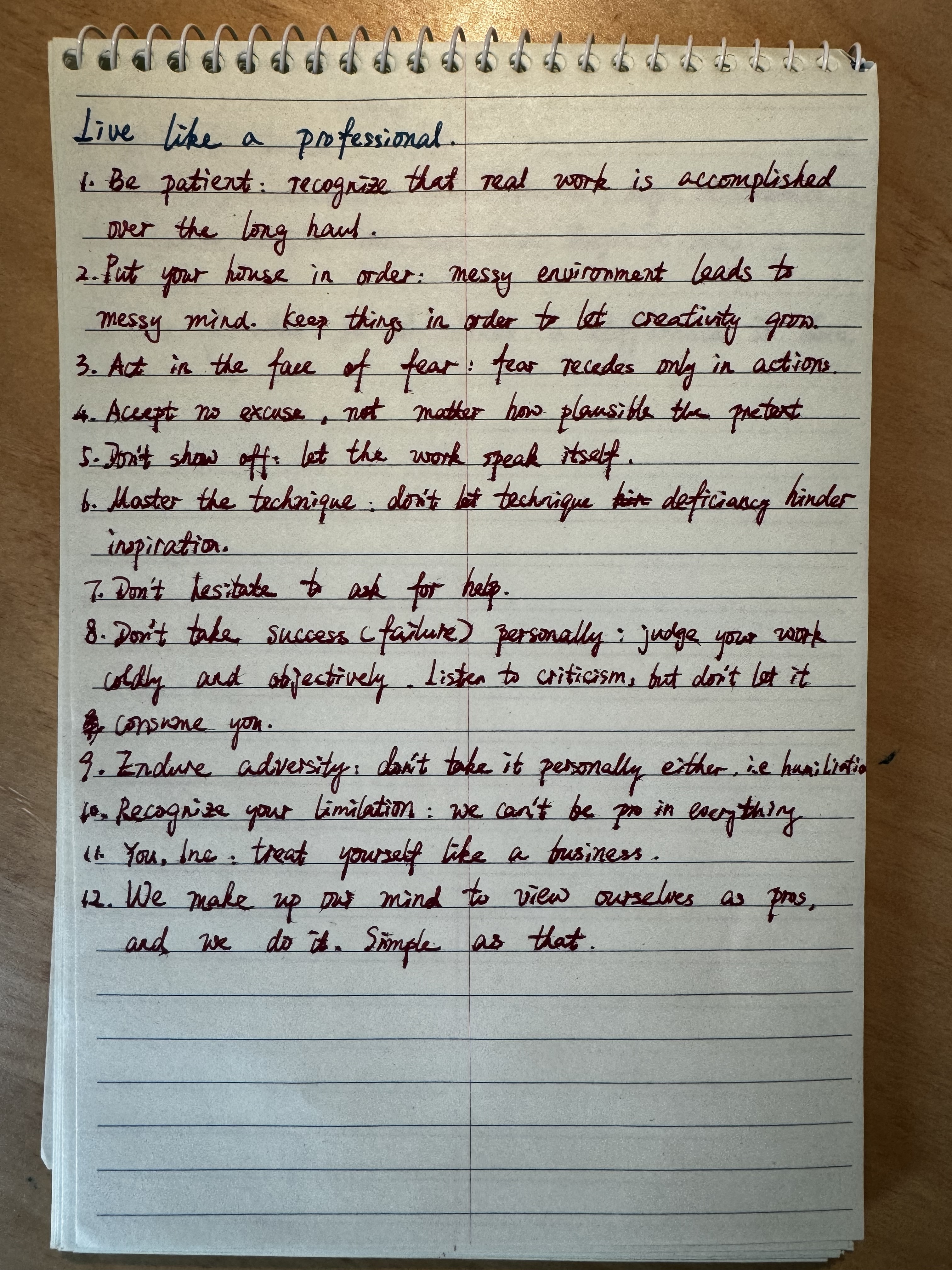 - Don't take successes and failures personally: treat your work objectively and coldly